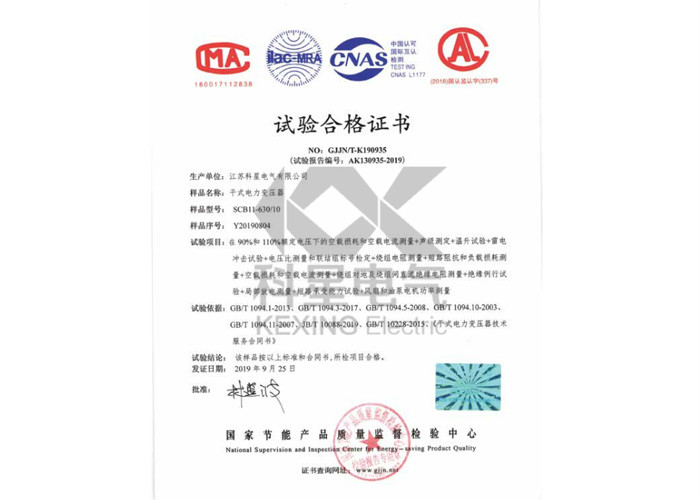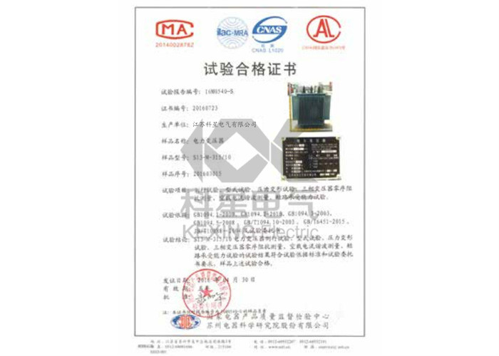 试验合格证书